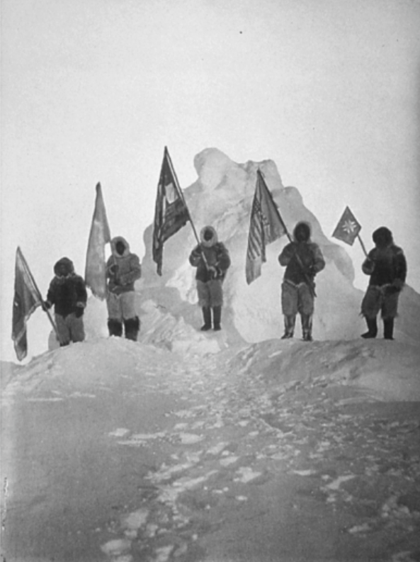 1909年美国海军工程师罗伯特·皮里(Robert Peary)和他的助手马修·亨森(Matthew Henson)带领一支6人组成的探险队抵达了北极点并插上了星条旗,他们被认为是世界上第一批抵达北极点(北纬90度)的人,虽然这一记录一直有争议,但无可否认的是皮里的北极之旅激励了无数人前赴后继探险北极。