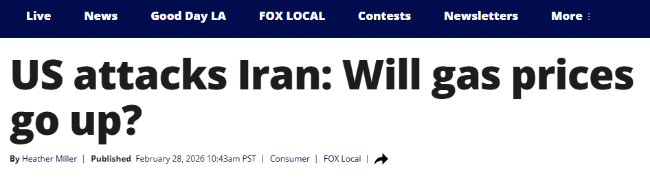据Fox报道 美国和以色列对伊朗的军事打击可能扰乱全球市场。如果冲突持续时间较长,石油及其他能源价格很可能随之上涨。