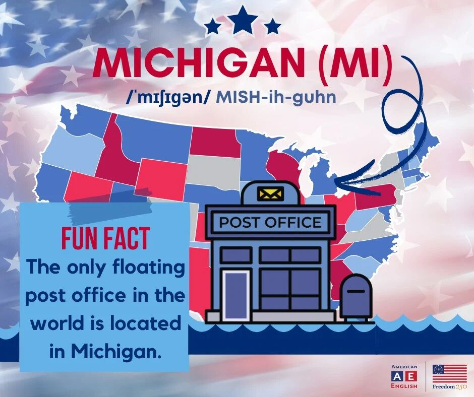 密歇根州拥有世界上唯一的一家水上邮局。邮件通过船只在五大湖之间运送,以独一无二的方式将岛屿社区紧密联系在一起。