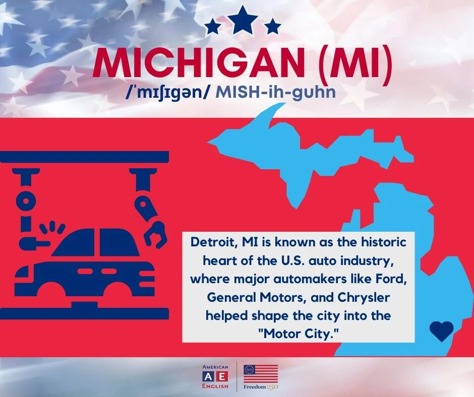底特律这座城市就位于密歇根州。底特律因其在美国汽车工业发展中的关键作用而被称为“汽车城"”(Motor City)。这里也曾是福特、通用和克莱斯勒等主要汽车公司的总部所在地,这些公司共同塑造了美国乃至全球的交通运输业。
