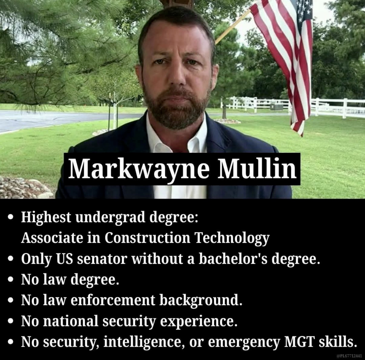 穆林现年48岁,出身俄克拉荷马州,人生履历鲜活立体。步入政坛前,他接手家族管道公司,兼顾牧场经营,还曾是一名综合格斗选手,2006至2007年间斩获三场职业比赛胜利,这份经历塑造了他强硬果决的行事风格。他拥有俄克拉荷马州立大学理工学院应用科学副学士学位(AAS,plumbing/construction technology方向),也是目前唯一一位没有学士学位的在任美国参议员。