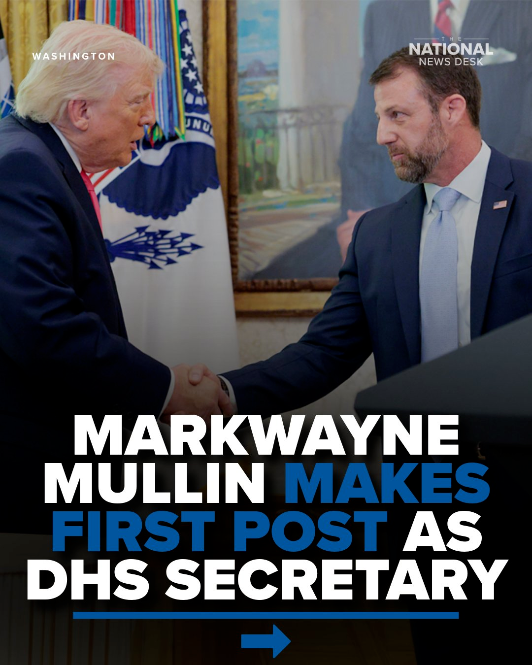 2026年3月24日,华盛顿白宫椭圆形办公室内,一场简短却意味深长的宣誓仪式悄然落幕。唐纳德·特朗普(Donald Trump)亲自主持仪式,正式迎接俄克拉荷马州共和党参议员马克韦恩·穆林(Markwayne Mullin)出任国土安全部(DHS)部长,接替此前被解职的克里斯蒂·诺姆(Kristi Noem)。这本该是一场按部就班的官方流程,却在特朗普朗读穆林简介时,出现了一个耐人寻味的停顿,也无意间为美国移民格局的潜在变动,埋下了伏笔。
