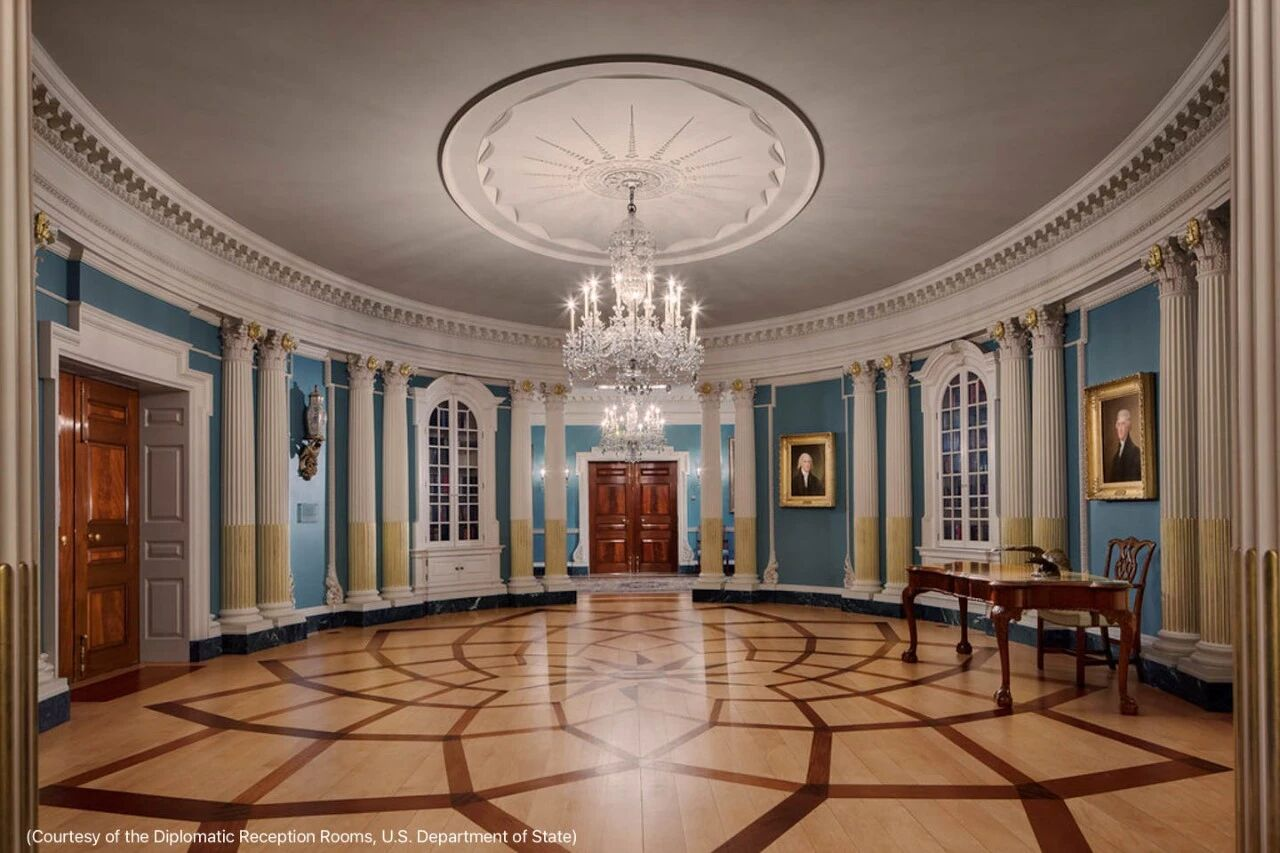 坐落在华盛顿的美国国务院顶层设有42间外交接待厅(Diplomatic Reception Room),厅内陈列着典雅的古董家具。这些陈设虽令人惊叹,但其意义远不止于美观。它们让访客重温美国的历史。
