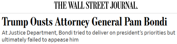 川普解雇司法部长帕姆·邦迪!曝川普早对邦迪不满:爱波斯坦案处理不当、起诉政治对手不力…(美中報道)
