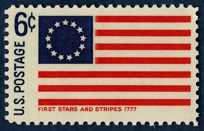 第二届大陆会议虽然确定国旗为星条旗,但并未规定五角星的排列方式,因此多年来出现了各种不同的星形排列,在第一面正式国旗上,13颗星呈圆形排列,人们常常将圆形图案与贝琪·罗斯(Betsy Ross)联系起来,但也有历史学家认为这一图案真正的设计者应该是《独立宣言》签署人之一的弗朗西斯·霍普金森(Francis Hopkinson)。此后国旗图案又有过多次改动,从1777年到1960年国会通过了多项法案,改变了国旗的形状、设计和排列方式。