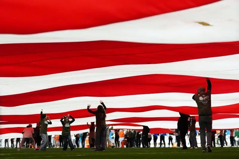 两个半世纪前美国国旗面世以来,星条旗便象征着年轻民主国家的希望,并将美国人民团结在捍卫自由的共同愿望之下。1776年7月4日美国独立,在独立后近一年的时间里美国并没有一面正式的国旗,当时与英军奋战的大陆军各个部队常会使用自己的旗帜,为了展现大陆军的团结并为新生的国家确立正式国旗,第二届大陆会议于1777年6月14日通过了第一部《国旗决议》(Flag Resolution),确立了新生国家官方国旗的雏形:美利坚合众国国旗由13条红白相间的条纹和13颗白色五角星组成,底色为蓝色,象征着“新的星座”;13代表着最早组成美国的13个州。国家国旗基金会的彼得·凯姆(Peter Keim)说:“国旗象征着美国,坚定不移地飘扬着。它曾矗立在麦克亨利堡(Fort McHenry),如今依然飘扬。”