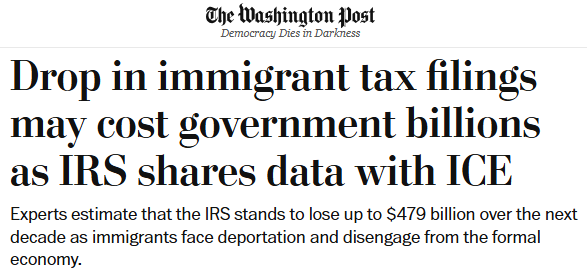 川普政府决定改变长期以来对国税局信息严格保密、并鼓励无证移民报税的做法,这一举措引发了恐惧和不信任——同时在移民执法局逮捕行动升级的背景下,愿意参与纳税体系的移民人数明显下降。