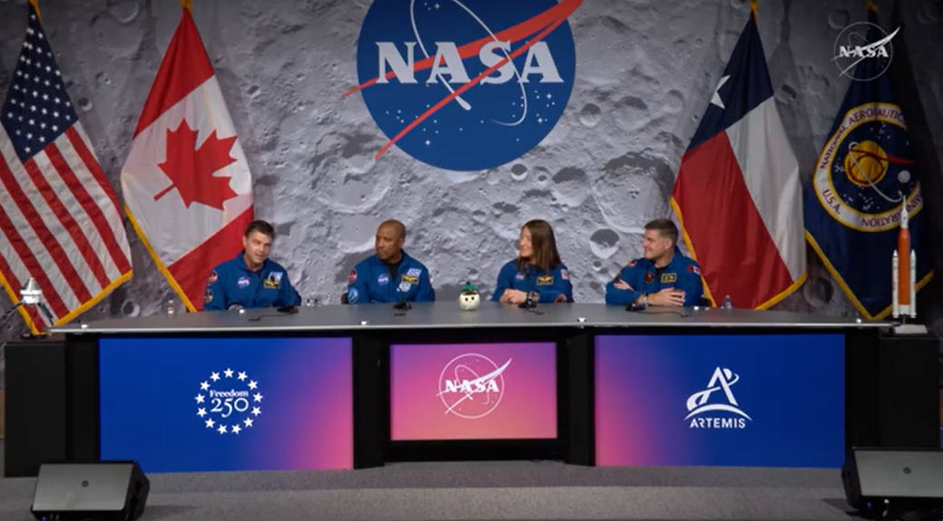 上星期四(4月16日),刚刚返回地球的“阿尔忒弥斯二号”绕月任务宇航员在休斯顿的NASA约翰逊航天中心举行了新闻发布会,这也是他们在完成这一为期10天的历史性任务后的首场记者会。
