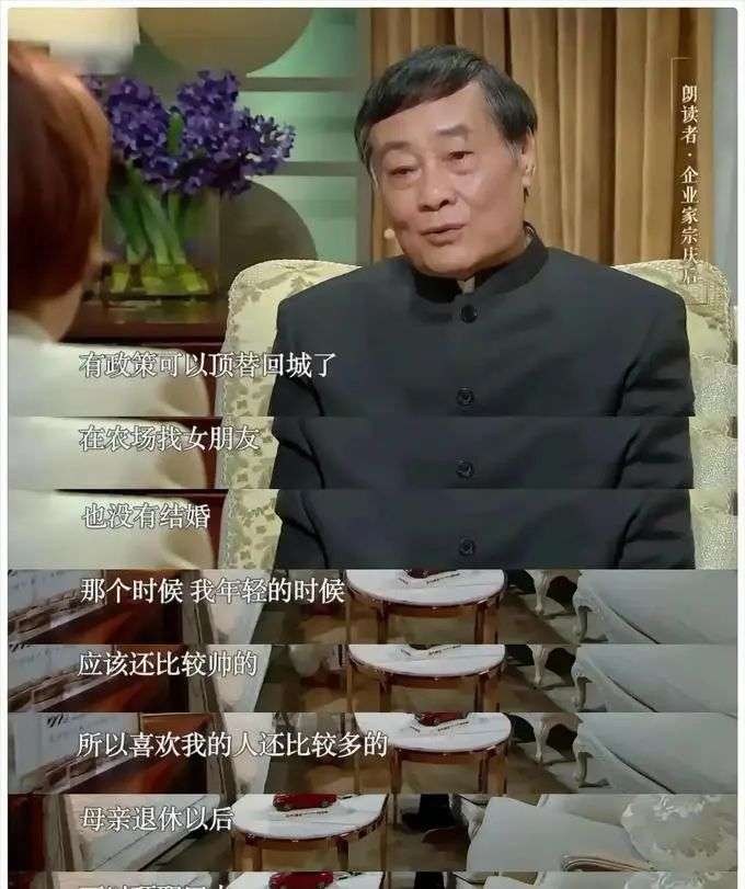 宗庆后在一次访谈中提到,在她年轻的时候,她看起来相当帅气,并且有很多人对她产生了好感。尽管当时她并不富裕,但她充满了自信。