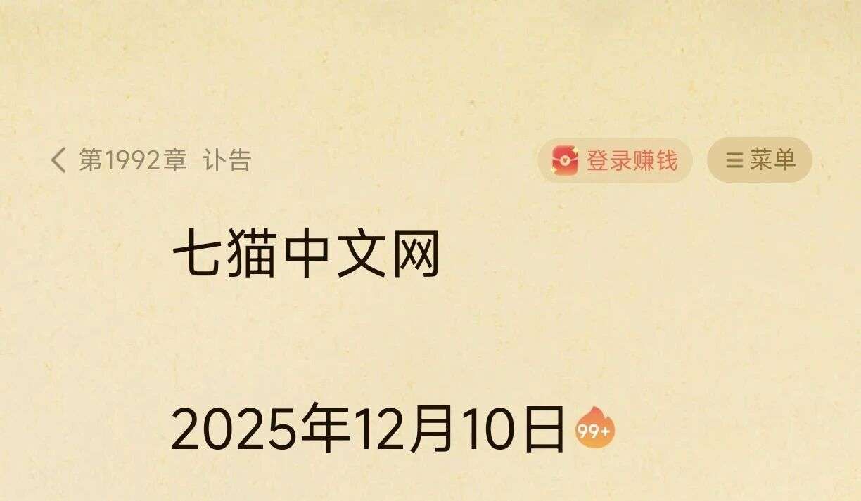12月10日,七猫中文网在1992章再次发布讣告,送别“痞子老妖”。