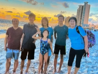 放暑假了,爸爸带着我们一家去海边度假。