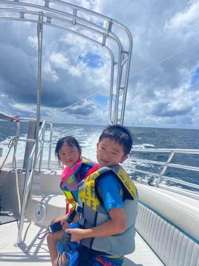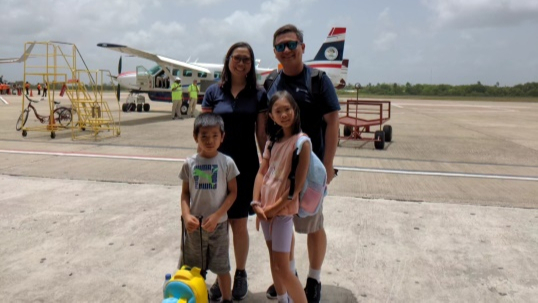 夏天,爸爸、妈妈、弟弟和我坐飞机去伯利兹旅游。