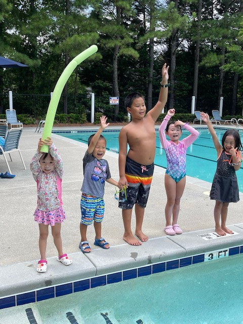 星期六我和哥哥、弟弟一起去奶奶家的游泳池游泳,Emma和Eva妹妹一起,也一起来游泳,我们在水里比谁游得快,哥哥游得是最好的,他游得很快!我会游一点,我们很开心在水里打水枪,跳水等。在游泳池里面游了很长时间,后来感觉有些累了,我们就上来休息,吃了些点心,然后再下水玩。这一天大家都很高兴。
