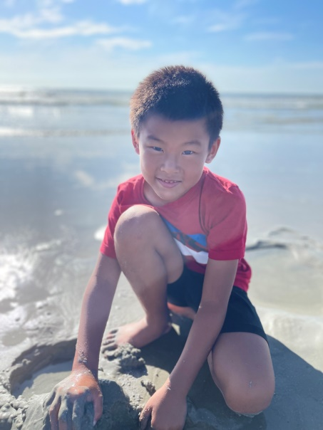 我最喜欢的是抓螃蟹。等晚上天黑了,螃蟹出来了,我和几个小朋友就到海边抓螃蟹。它们大部分都很小,我们需要电筒才看得清螃蟹在哪儿。我的电筒最厉害,是戴在头上的,非常亮。我用我的电筒看螃蟹,我的朋友用手去抓。我还有最厉害的网子,可以网住螃蟹。我们需要甩掉网子里的沙子,这样放在桶子里不占地方。最后,我们把螃蟹放回了沙滩,他们有自己的家。