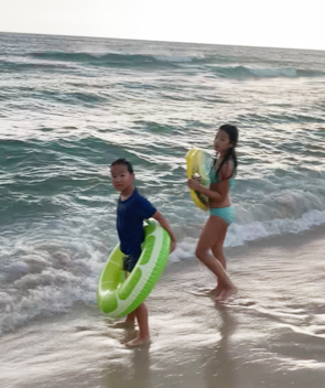 伯利兹有很长的海滩,海滩上露出了礁石。我们在那里散步,嬉戏,游泳。有一天我们上船去浮潜。浮潜是一项很有趣的活动,在水底下我和弟弟看到了很多鱼,不知名的水草,也看到了爸爸也和鲨鱼游泳,还看到大乌龟在海里吃海草。海底世界真的很神奇啊!