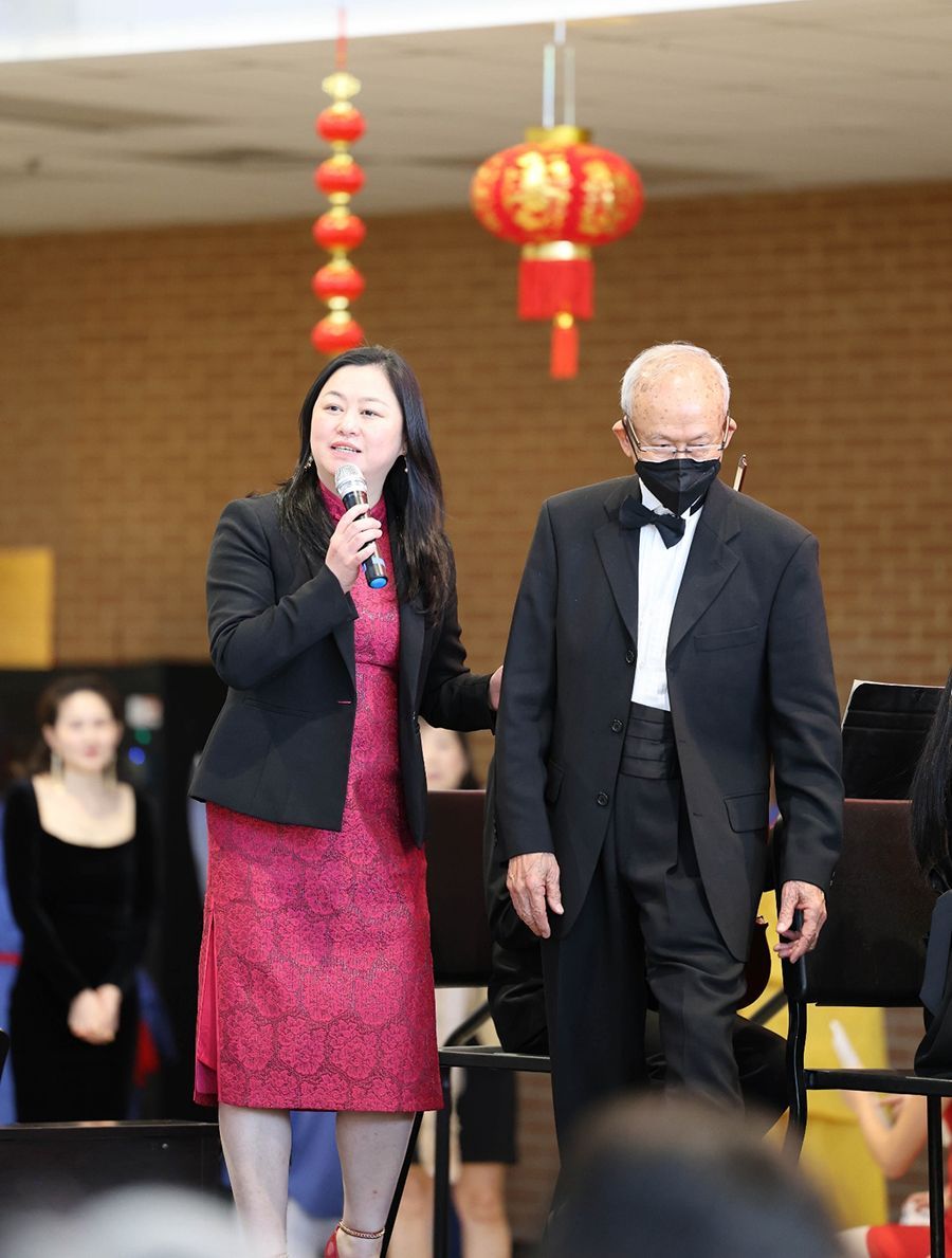 精彩的乐团表演结束后,ACCA总校长许凌渝女士上台隆重介绍并感谢乐团指挥柳可久老师以及独唱演员刘迧珍老师,他们对中华文化以及音乐的热情深深感染了学生们并激励他们用自己的艺术才能传播中华文化。接着许校长代表学校理事会和校务会给观众们致以节日的问候对长期支持学校发展的社团和商家表示了衷心的感谢。此次元宵节庆祝活动得到了亚城华人企业家俱乐部以及CorDx公司的金牌赞助以及一凡餐饮、WePartner和World Financial Group的铜牌赞助。