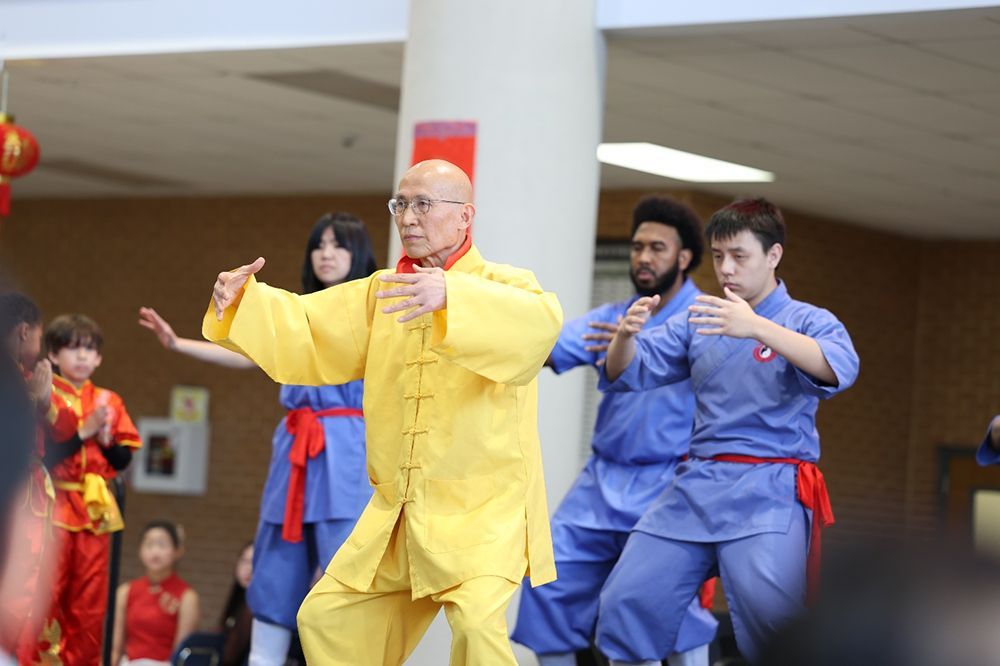 接下来是中场武术舞龙舞狮表演。来自少林武术学校的武林高手表演了太极、武术及舞龙。来自ACCA北校武术班的全卫东老师带领学生们表演了精彩的舞龙舞狮以及少林拳。文艺演出的下半场由学校师生以及社区文艺团体呈现,节目内容丰富多彩,形式多样,赢得了观众阵阵掌声。