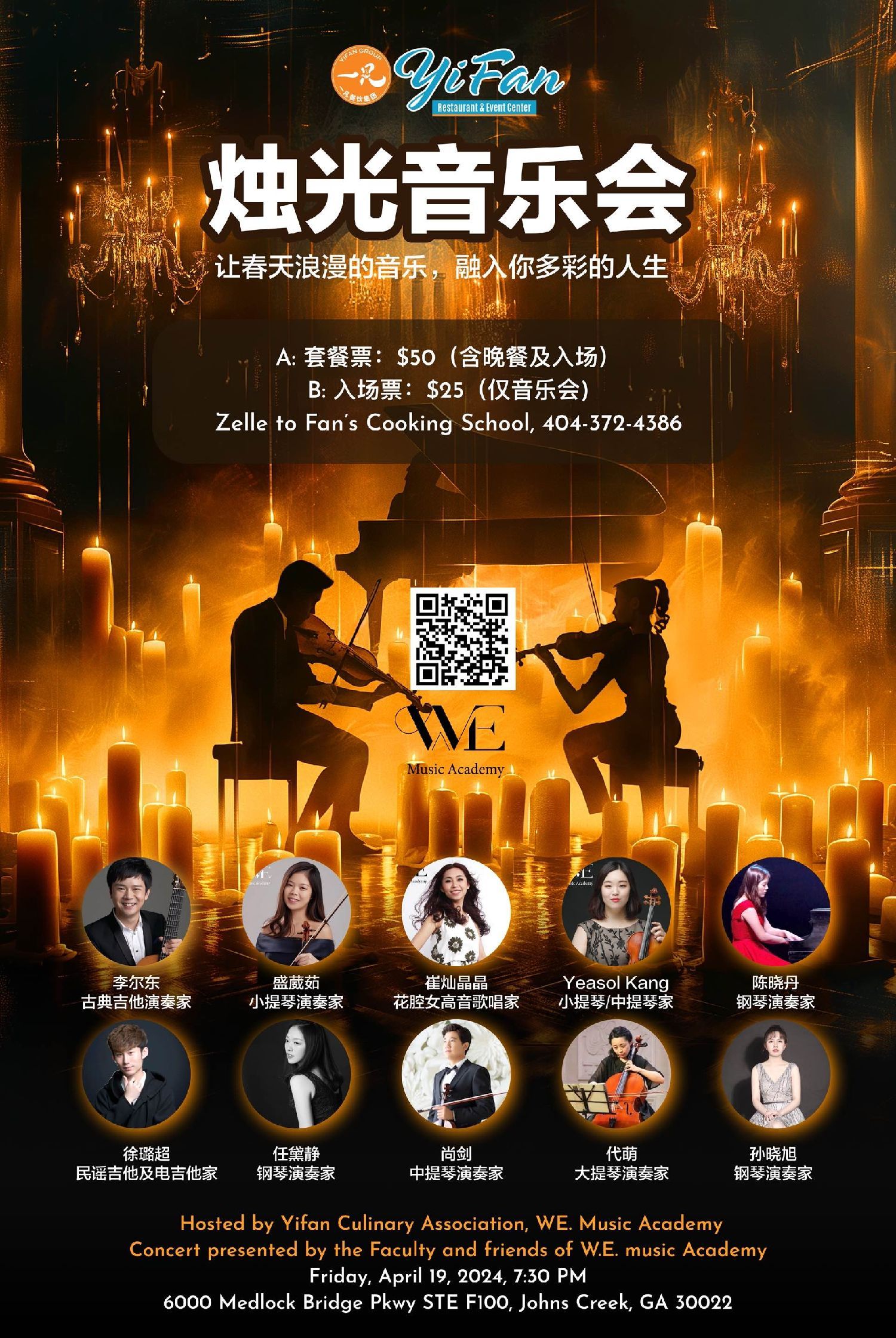在这个春风拂面的季节里,一凡文化中心携手W.E.Music Academy,将为您带来一场独具魅力的音乐盛宴——烛光音乐会。这是一场由青年音乐家们倾情奉献的音乐之夜,您将沉浸在优雅舒适的氛围中,聆听吉他、小提琴、中提琴、大提琴、钢琴和花腔女高音的绝妙演绎。