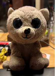 我有一个毛绒狗。它是在我二年级时妈妈送给我的,因为我被选进了TAG program。我给它取了一个名字,叫Fluffy。
