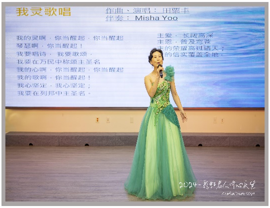 Over the years,Linxiang has composed numerous hymns,including Psalm23"The Lord is My Shepherd,"and not only sings about God's wonderful guidance but also shared with me that since last year's inaugural original music concert in Atlanta,she has been preparing for this year's second hymn concert.She reserved the stage at the Rainbow Center,and gathered brothers and sisters from seven different churches in Augusta and Atlanta,including Sister Tian,Jiayi,Atlanta Chinese Christian Church's organist whose husband works at the Rainbow Center,and unexpectedly met Mischa Yoo,a pianist who co-founded the nonprofit Anthem Music Missions with her Korean husband,bringing heavenly music to the forgotten and spreading the gospel through the touring performances cross America.Throughout the preparation of this hymn concert,participants from different churches may not have had many opportunities to rehearse together,yet they felt united in the same Spirit,complementing one another and supporting one another,fulfilling the precious promise of Psalm23:1,"The Lord is my shepherd;I shall not want."