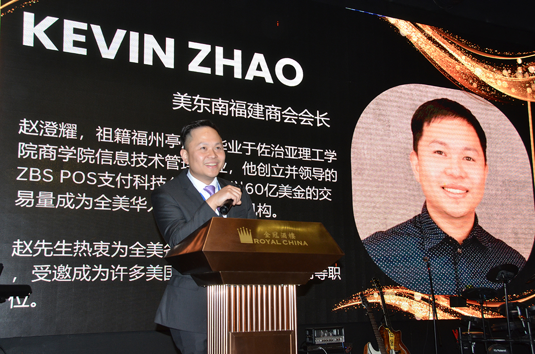 美东南福建商会会长Kevin Zhao在大会致辞中首先对大家的支持表示感谢。他特别感谢在商会募捐中慷慨解囊的个人和企业。他在讲话中汇报了过去一年多来,商会围绕四个方面开展的工作:举办了系列商务沙龙,组织会员探讨新商机、新趋势;通过参与对外交流活动,为商会建立了联系渠道,拓宽了信息来源;会员发展成效显著,会员企业涵盖面不段扩大;建立了商会章程和规章制度与组织结构,并对未来的方向做了探讨。在谈到未来的工作重点时,Kevin Zhao会长说,商会将继续加强商务交流,特别在帮助会员发现投资和发展的机会方面做出努力;将帮助会员拓宽视野,更新知识,掌握新的技能;将促进会员企业提高现代化和数字化管理水平;将促进会员更好地融入主流社会,扩大企业影响,协助维护企业和经营者的权益。