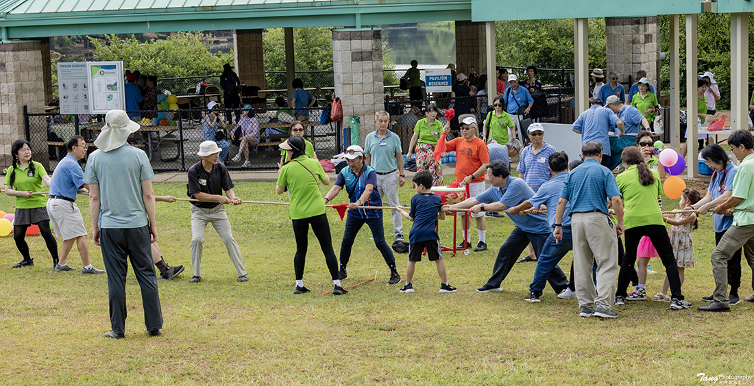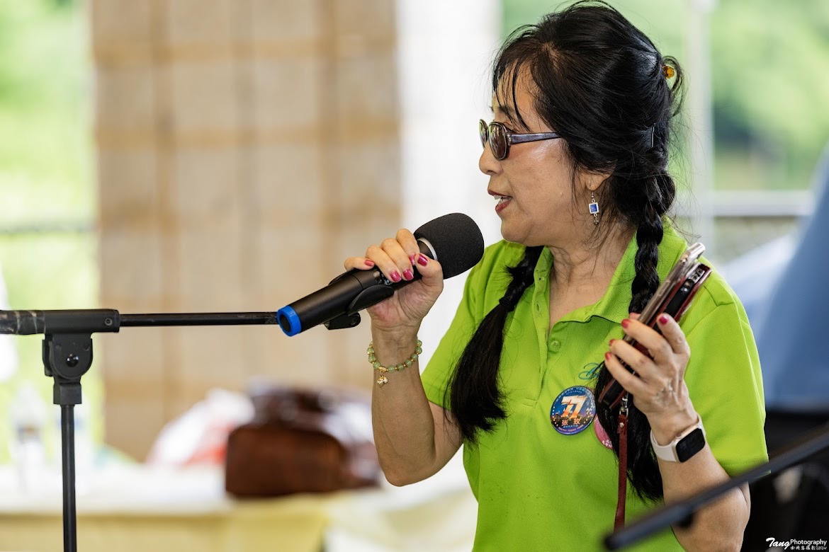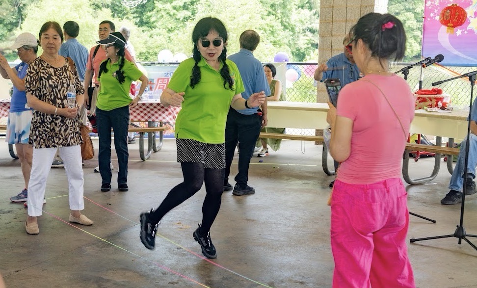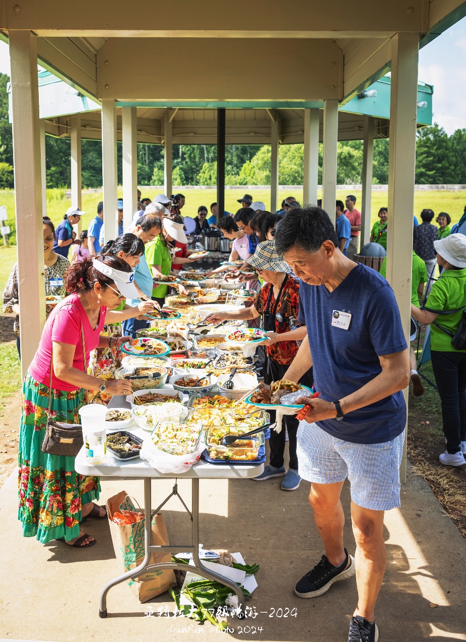 夏日的早晨,阳光温柔地洒在Collins Hill湖畔公园,湖边绿荫环绕,湖面波光粼粼,湖畔景色在晨光中格外迷人而生动,充满了夏日的活力与静谧。水面映出那一抹金色的阳光,为这场聚会注入了一丝童年的梦幻,微风吹拂着青草绿叶,仿佛轻声低语,述说着昔日的童年往事。湖边的大棚早已被亚城77级及舞蹈队的庆典横幅和五彩缤纷的气球装饰得喜气洋洋。欢歌笑语、音乐舞蹈、爽朗的笑声和友好的拥抱填满了大棚的每一个角落。