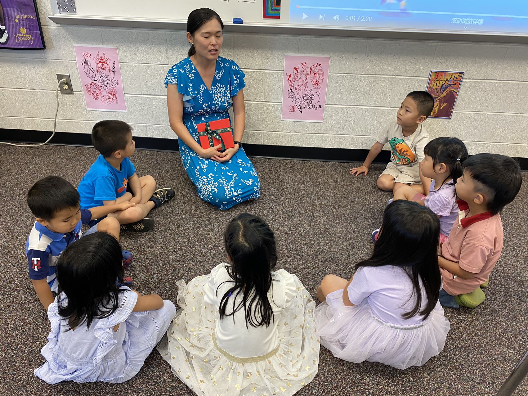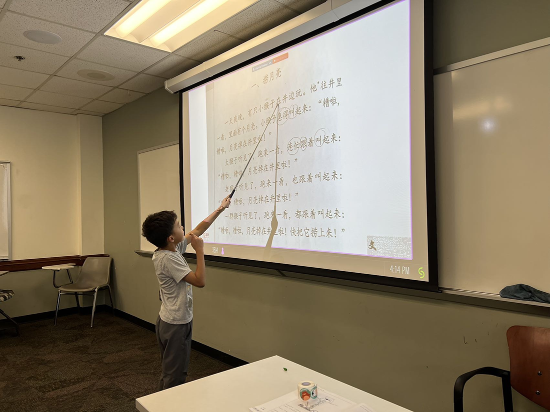 离上课还有半小时,就已经有学生们拿着老师提前给出的教室信息,陆陆续续到达教学楼。孩子们看到久违的小伙伴们,都兴高采烈地聊天玩耍。刚加入学校的一年级和学前班的新学生们,则在家长带领下进入教室,等待上课。上课铃还没响,各个班级里的老师们就已经开始热情地与学生们交谈,用活泼的形式介绍自己,同时开始了解每个学生。一开始小朋友们还略显拘谨,但老师的热情很快就缓解了孩子们的紧张情绪。上课铃响后,学生们很快进入状态,有的在老师的鼓励下到台前大声指读课文,有的积极参加老师设计的词卡游戏。老师们精心准备的教学材料和丰富的教学经验,充分调动了学生学习中文的积极性!