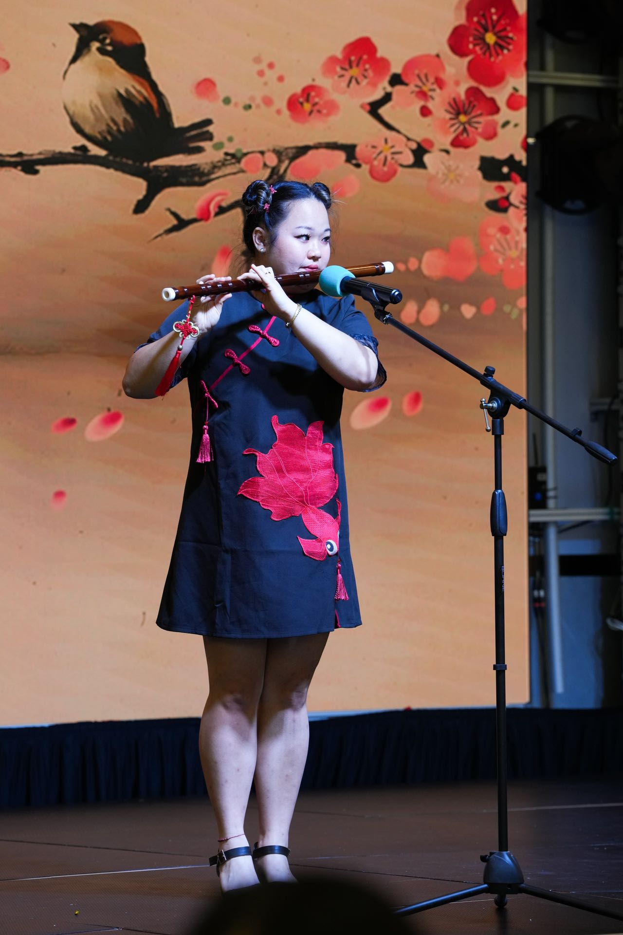 还有春蕾音乐学校的笛子独奏《燕归来》。演奏者呂嘉楊(Vicki Lu)是佐治亞大學的音樂學博士研究生,學習民族音樂學,重點研究中國音樂和表演,能演奏古箏、竹笛、葫蘆絲、長笛等。她是亞特蘭大長笛俱樂部青少年藝術家一等獎獲得者。她在第三屆南洋國際音樂比賽中獲得古箏高級獨奏組金獎。Vicki的母亲杨春创办了春蕾音乐学校,她毕业于四川音乐学院二胡和古筝专业,从事民乐教学二十余年。