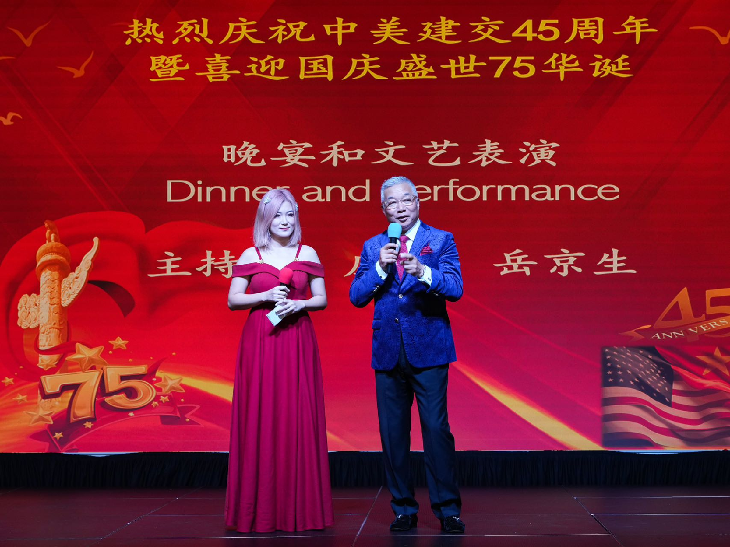 9月30日晚,由亚特兰大中国商会牵头发起,亚特兰大现代中文学校、全美华人协会、中华专业人士协会一起筹备,美东南40个华人社团共同参与的庆祝中美建交45周年暨喜迎中国国庆75周年的盛大庆典晚会和晚宴在新开的富丽华酒楼隆重举行。
