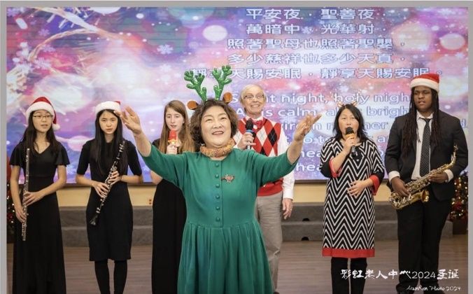 这首由雅歌诗社新任社长历斌先生创作的七律不仅充满了对耶稣基督降生的敬仰之情,还蕴含着普世平安与救赎的希望。在圣诞佳节即将来临的日子,雅歌艺术团于12月21号来到亚特兰大彩虹康乐中心,为老人们呈现了一场充满了爱的圣诞会。音乐会上,老人们欣赏了精彩纷呈的越剧诗篇、原创圣诗、古典舞蹈、器乐表演和大合唱。大家载歌载舞,为圣诞假期带来了一片祥和欢乐的气氛。”