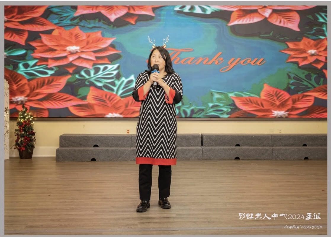 这场以信仰为核心,以艺术为纽带的圣诞音乐会为彩虹中心的老人们带来了欢乐与温暖,也成为了亚城冬季的一道圣洁风景线。洋溢着节日喜庆与信仰之光的圣诞音乐会在总策划朱临湘女士的谢幕致辞中圆满落下了帷幕。她对所有参与者、观众以及幕后工作人员表示了由衷的感谢。她强调,这场音乐会不仅是一次艺术的盛宴,更是一次敬拜的献祭,为老人们、社区以及所有信徒带来了爱的力量与节日的祝福。最后,她将一切感谢、赞美、尊贵和荣耀归给在高天宝座的阿爸父神。