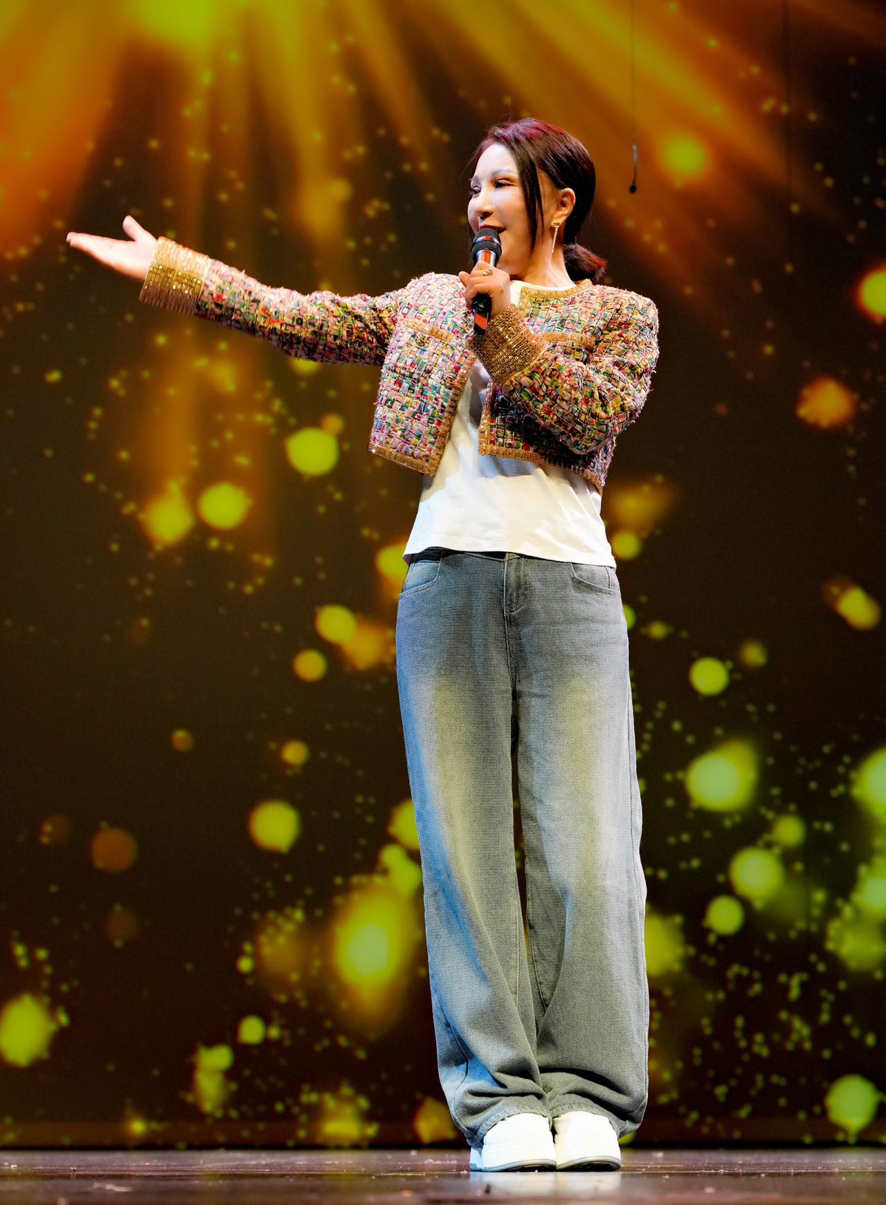 她演唱了《为我们今天喝彩》《拥抱明天》和《You Raise Me Up》。
