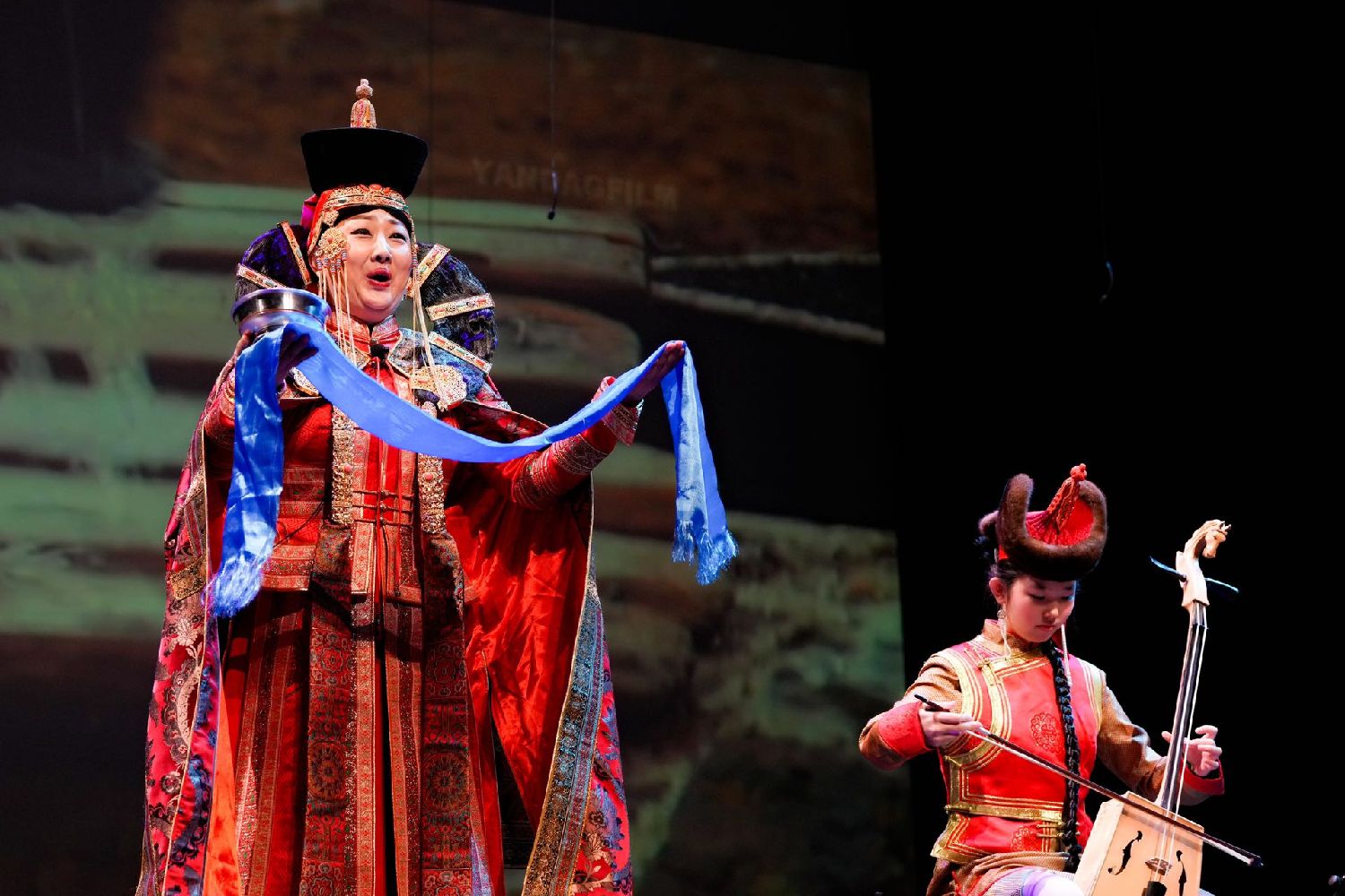 她演唱了蒙古长调《祝酒歌》和《吉祥如意》。