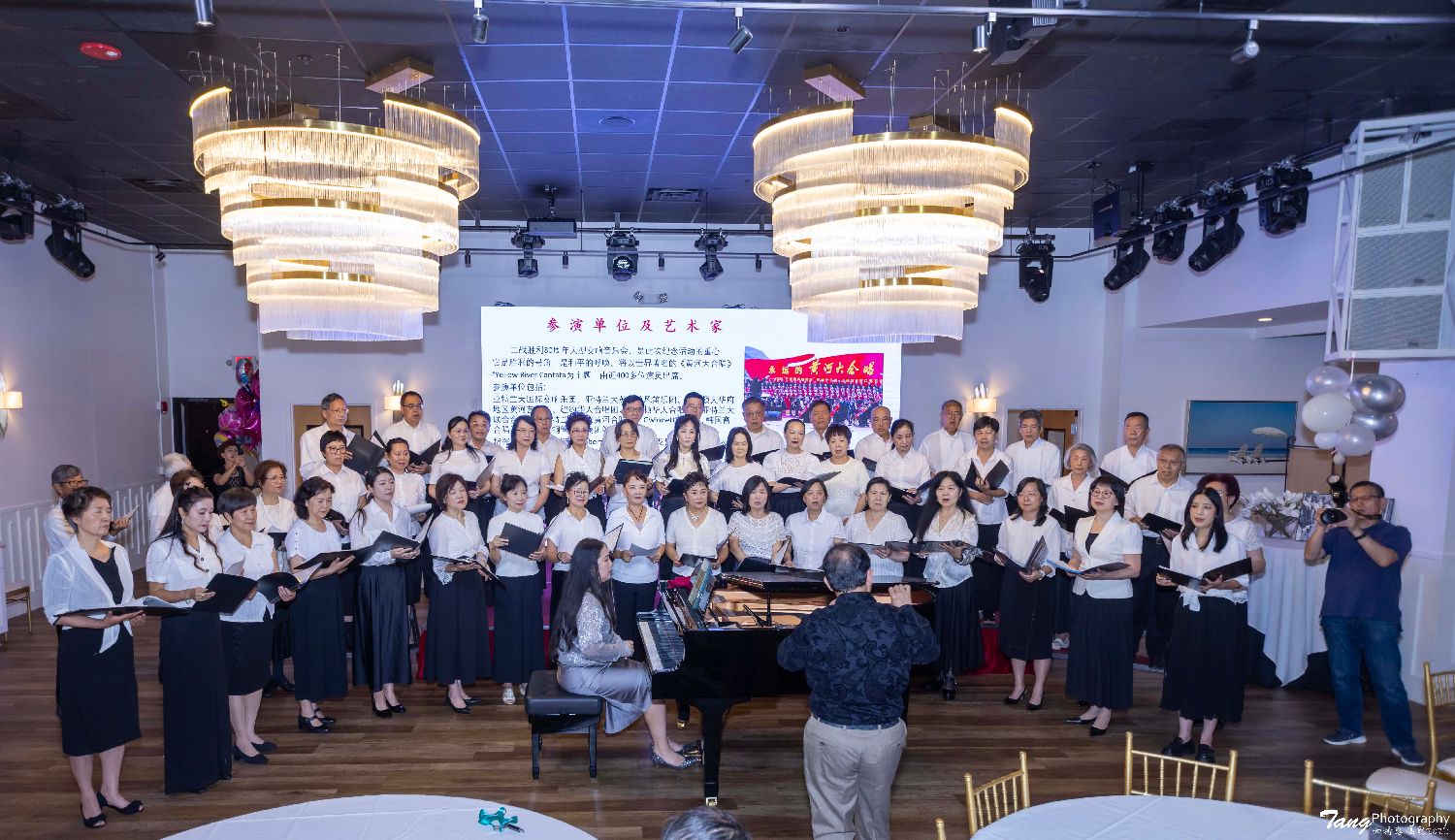 舞台背景图前,亚城黄河合唱团激情高歌!这首由光未然作词、冼星海作曲的《保卫黄河》,将人们带回到“保卫家乡,保卫黄河,保卫全中国”的抗战年代。这是2025年5月30日,在一凡活动中心隆重举行的“二战胜利80周年系列庆典”总动员大会开场时的震撼场面。