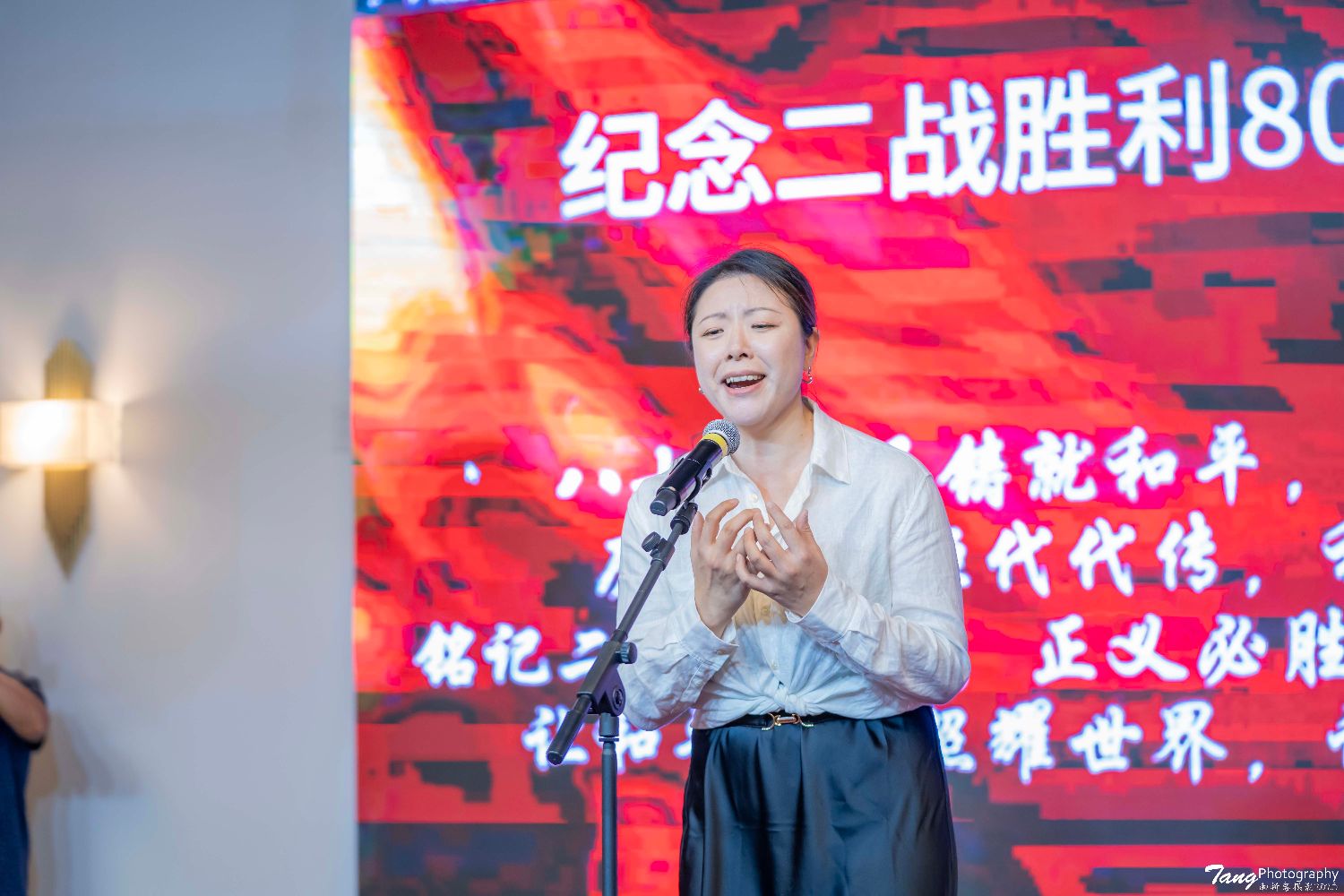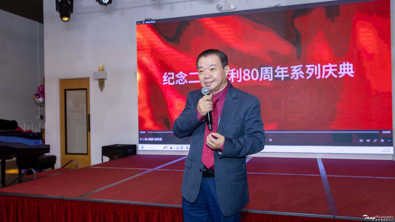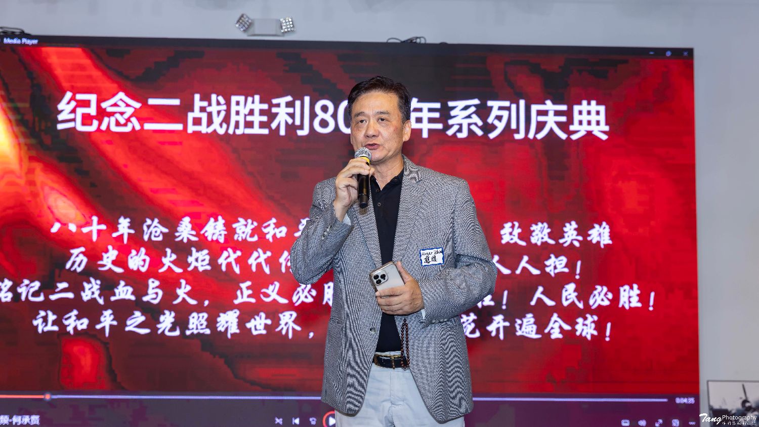 赵煜先生阐述了庆典活动的重大意义。他说,发起这次活动的构想,是基于目前国际形势的不断动荡,俄乌战争、中东战争、以及世界其他地区的不稳定因素,从而使和平生活变得更加珍贵。纪念二战及抗日战争胜利80周年,珍惜先辈们用鲜血和生命换来的八十年的祥和年华,变得尤为重要。与此同时,在美国国内,因为地缘国际关系所引起的激烈竞争和剧烈冲突,正在一步一步挤压华人华侨的生存空间。因此,回顾二战及抗日战争的艰难岁月,追溯战争中中美两国军民并肩奋战、经受了血与火的洗礼和战争考验的深厚友谊,将会增进美国人民对于中国人民和在美华人的友好感情,这对我们华裔社区在美国争取一个良好的生存环境,有着巨大的现实意义。