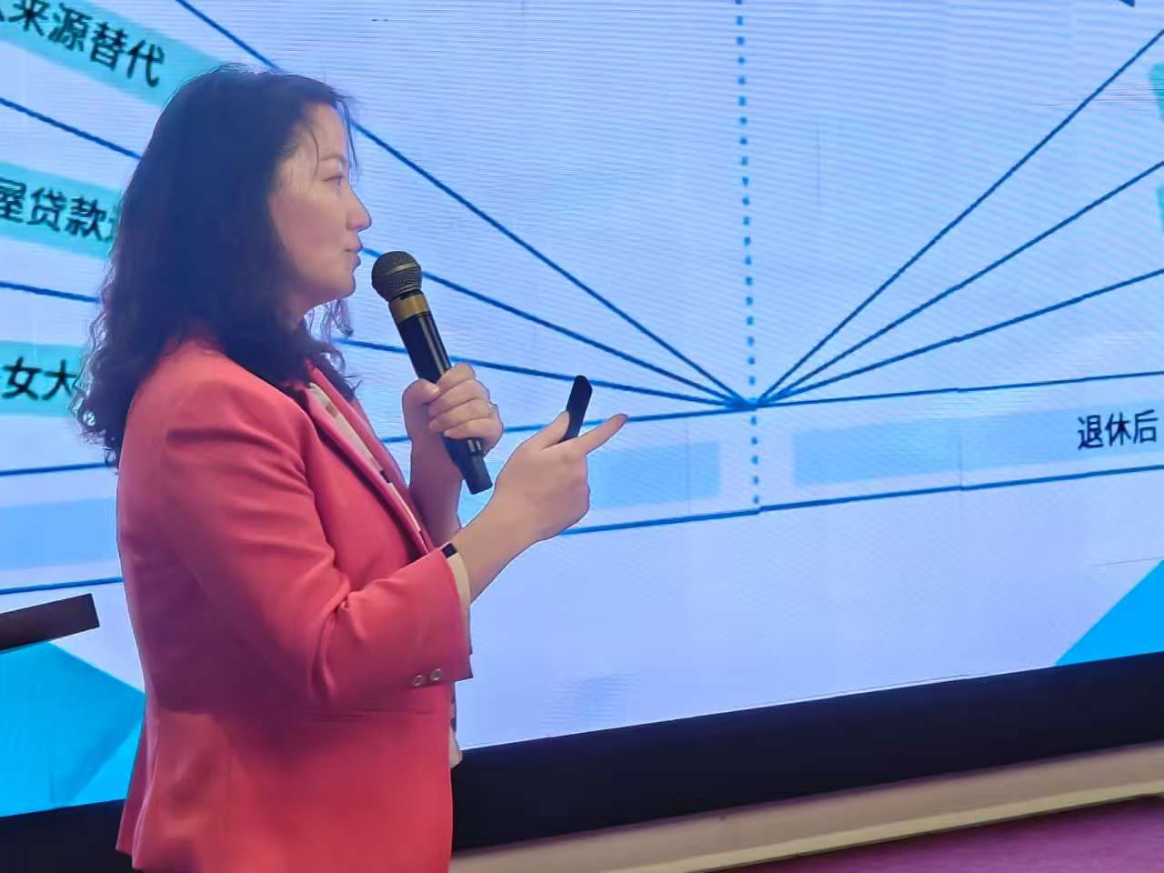 随后由主讲人姚洁老师接棒。姚老师以深入浅出的方式讲解退休规划核心知识,从理论逻辑到实际应用层层剖析,使复杂概念变得易于理解。现场听众不时点头认可,并以掌声与笑声回应。