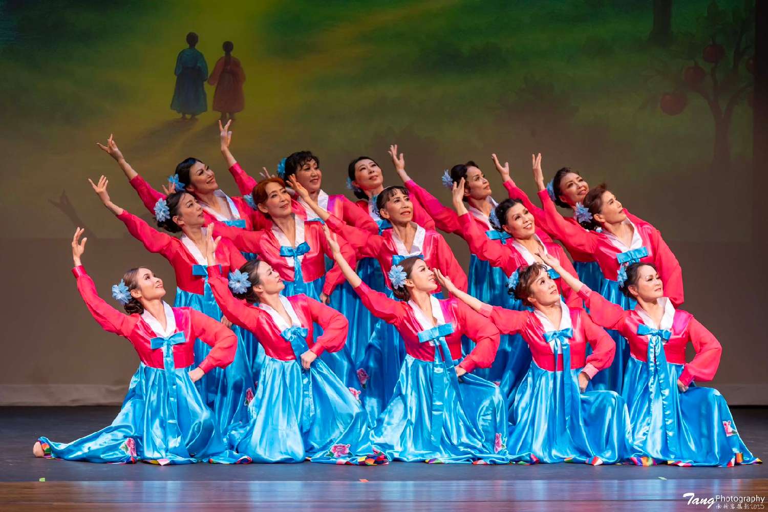 由新韵艺术团舞蹈队表演的朝鲜族舞蹈《丰收的喜悦》以其欢快的节奏,艳丽的服装让观众的眼睛为之一亮,生活的甜蜜溢满心头。