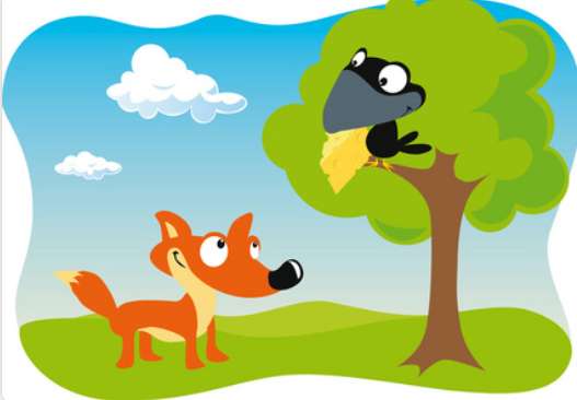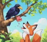 乌鸦觉得他说得有道理,刚一张口,那块“肉”就掉了下去。乌鸦假装要飞下来抢,狐狸一看,连想都没想,一口就把肉吞了下去。