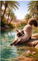 凯特琳来到的第二个地方是一个沙漠。她在那里走了好长好长的路,才到达一个绿洲。绿洲里有碧绿碧绿的水,还有各种各样的椰子树:有的不结椰子,有的结着椰子,还有的长得弯弯曲曲。凯特琳就在这个绿洲住了下来。她每天去游泳,玩得非常开心。可是,没有朋友陪她一起玩,凯特琳又慢慢觉得无聊了。于是,她离开了绿洲,再一次踏上了冒险的路程。