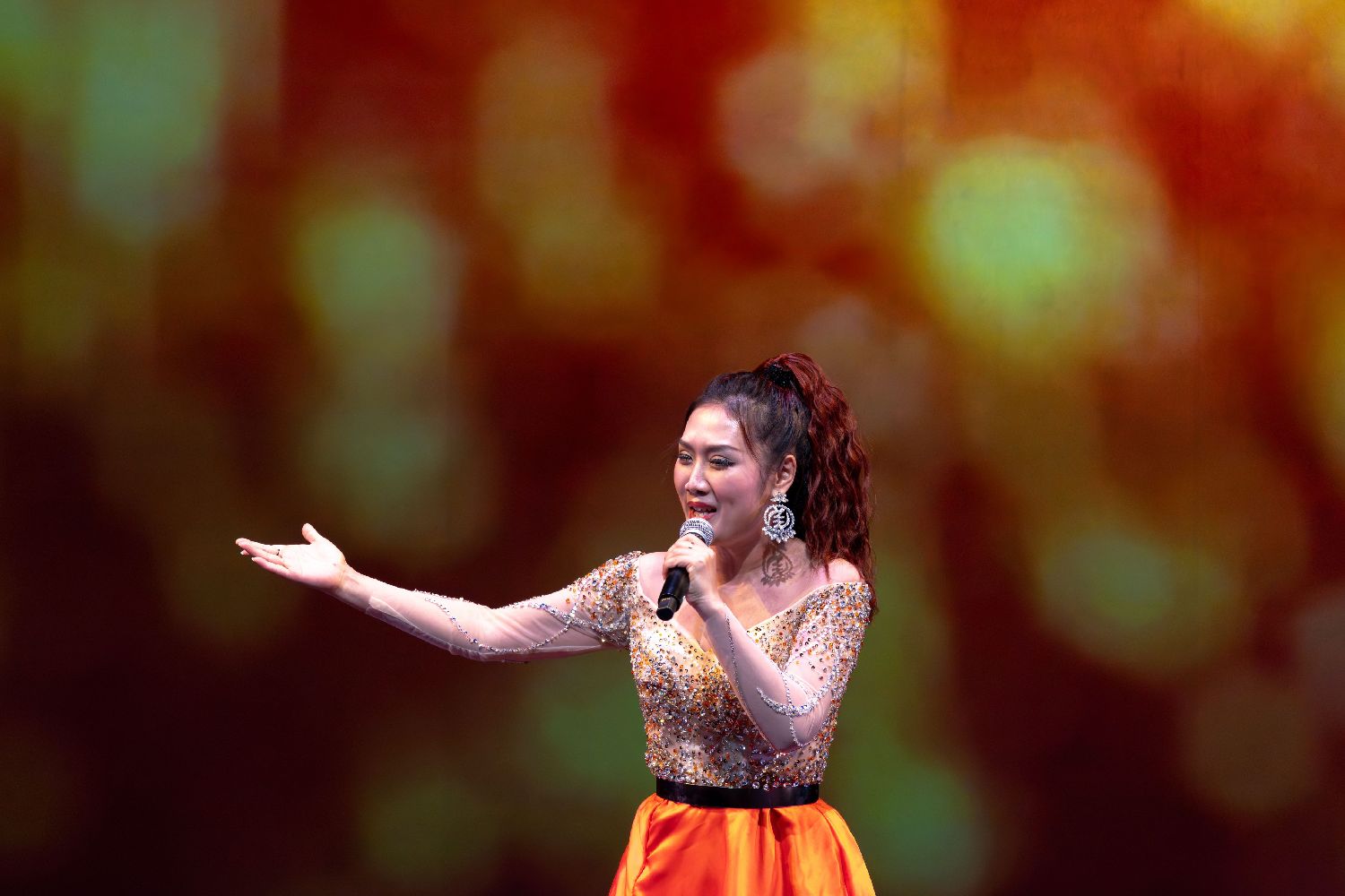 通俗歌曲《恭喜恭喜》与《I Will Always Love You》由国家一级演员宋晓静演绎。她以扎实的演唱功底与极具感染力的舞台表现,将节日的喜庆与深情的抒怀完美融合,赢得阵阵掌声。