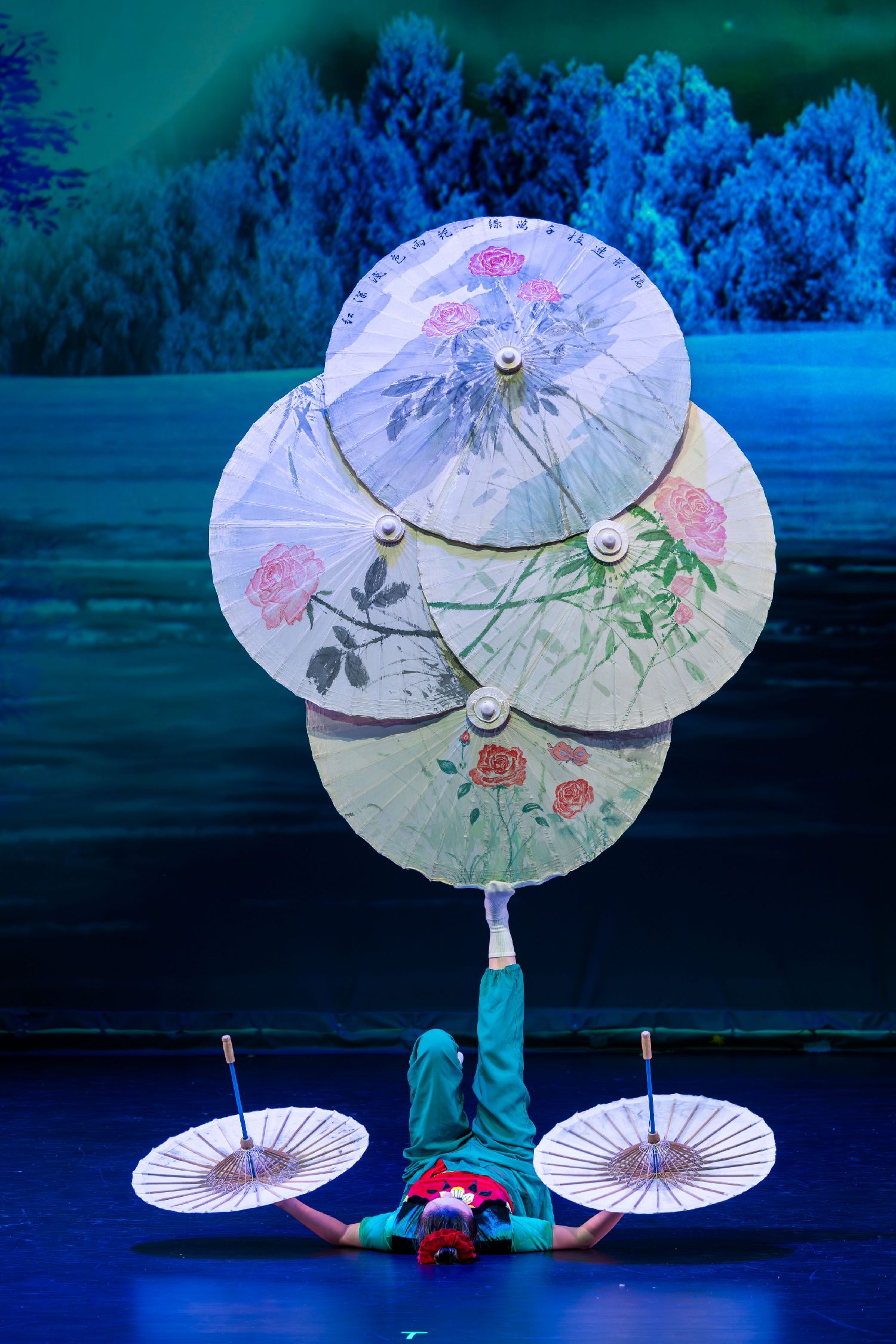 杂技节目《蹬伞》由戴玥呈现。力量、平衡与美感的完美结合,再次点燃现场气氛,观众掌声经久不息。