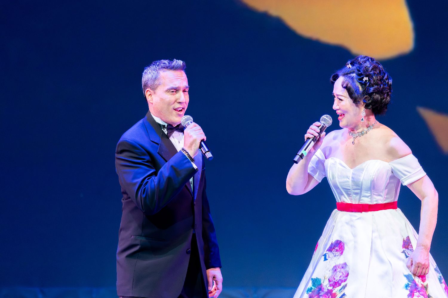 随后登场的是高水准声乐组合:女高音独唱《小河淌水》由国际知名女高音张莉演唱,音色纯净悠远;高音二重唱《告别时刻》由张莉与男高音伊彬·勒布纳合作完成;