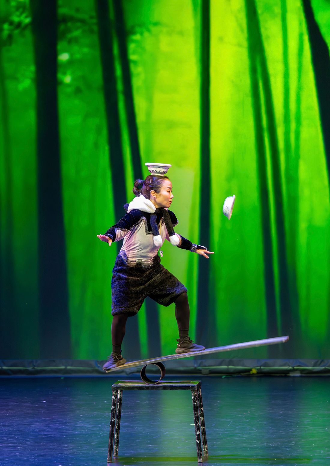 杂技节目《晃板翘碗》由曾蕾带来。高难度的技巧与精准的身体控制相结合,惊险与美感并存,充分展现了中华传统杂技的独特魅力。