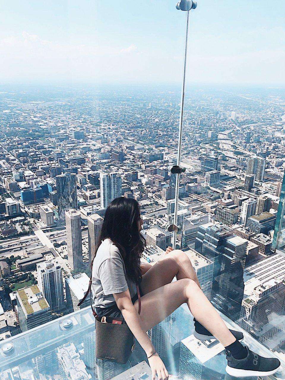第三天我们先去了艺术博物馆,里面好多画和雕塑。之后我们就去了(威利斯大厦)。它是那么的高后来我才知道他是世界第二高的摩天大楼,它最特别的是有一层是突出的玻璃观景台,站在那么高的台子上,一开始我很害怕不敢靠近边缘的玻璃,爸爸妈妈鼓励我,我一点一点走近,终于敢往下看了——哇!整个芝加哥就像玩具城市一样铺在脚下,真的好壮观。