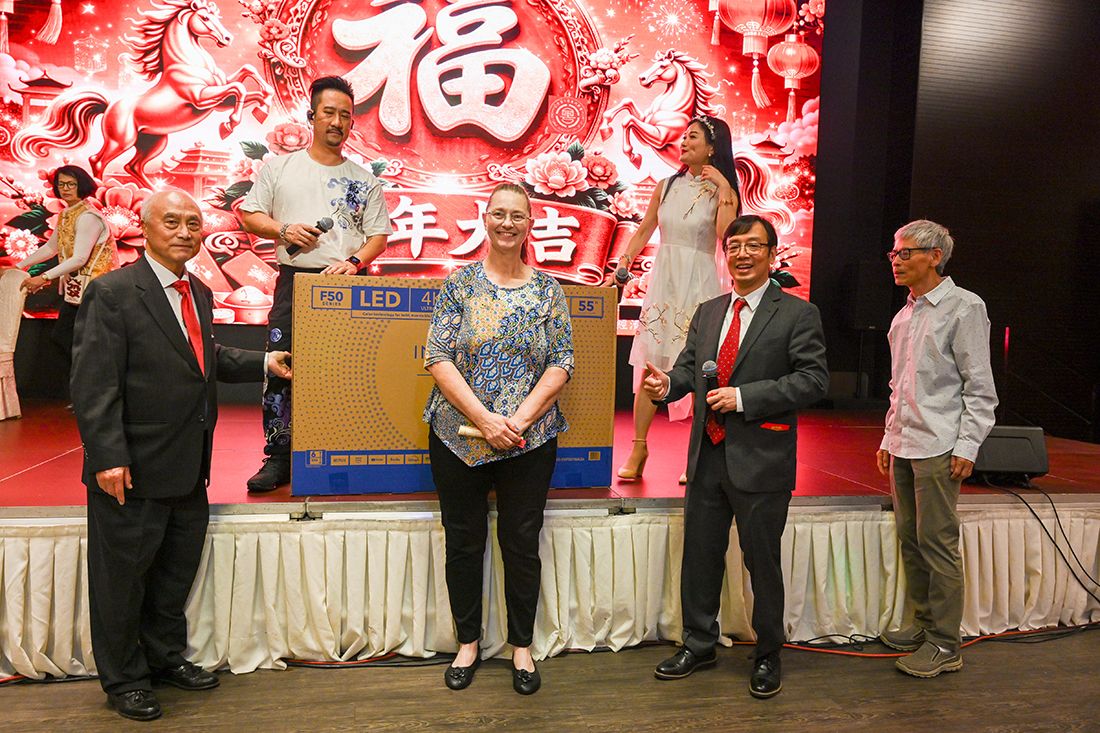 在節目間隙,廣東同鄉會通過抽獎活動送出大量由多位商家及個人捐贈的禮品禮券和利是。今年的獎品誠意十足,不僅數量豐富、種類多樣,包含高級紅酒、各式廚房用品和家電、AirPods,筆記本電腦等實物好禮,還準備了超過30封現金紅包,金額分別為100、50及20美元不等。