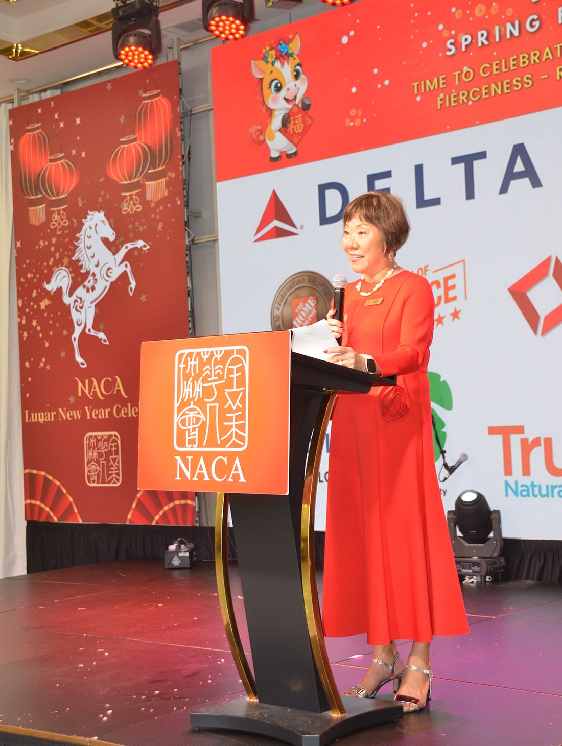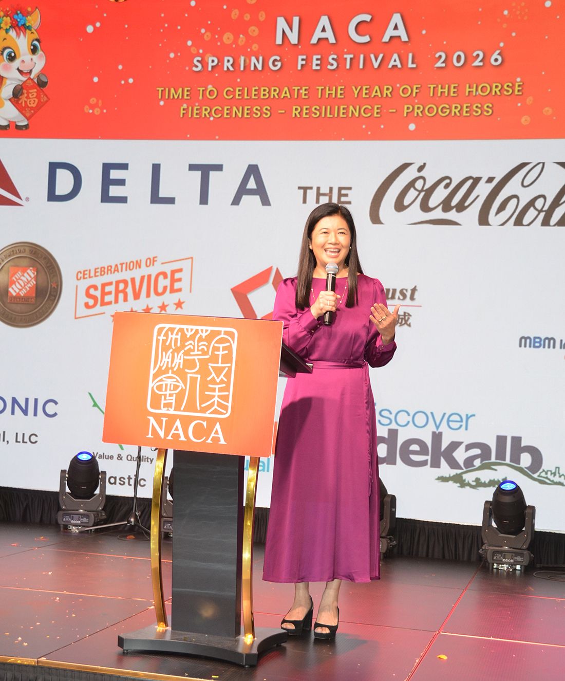李会长又表示,2025年,NACA荣幸地支持了众多本地组织和活动:包括“儿童识字序言项目”、C.T.Vivian领导力学院、香港端午节、佐治亚理工学院中国关怀项目、中国人民抗日战争暨二战胜利80周年纪念活动以及亚特兰大现代中文学校等。李会长说,今晚我们欢聚一堂,共同庆祝,让我们从象征勇气、韧性和进取精神的骏马中汲取灵感。愿今晚充满欢乐、笑声和意义非凡!