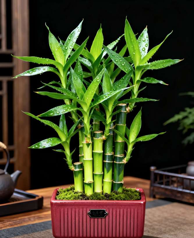 富贵竹的样子很好看。它的茎是翠绿色的,细细长长,像一根根小柱子。叶子也是绿色的,修长而舒展,像一只只小船。它不需要很多阳光,也不用每天浇水,是一种很容易照顾的植物。