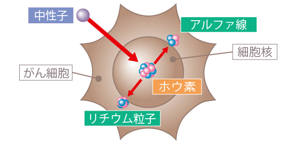 BNCT的基本原理是:在治疗过程中,当中子照射到硼时,会发生核反应,产生高能的α粒子和锂粒子。这些粒子只能在非常短的距离内(大约一个细胞的大小)传播,因此它们对周围的健康组织影响非常小。硼化合物会被癌细胞选择性地吸收。这些积累了硼的癌细胞在接收到中子照射后,会被精准地破坏,癌细胞被杀死,而健康细胞则保持完好,不受影响。