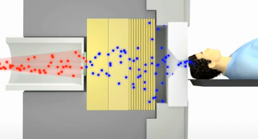 医生会使用加速器加速质子(带正电的粒子)。这些质子在加速器中会被加速到非常高的速度,能量非常高,然后通过撞击某种专门的材料(特定的靶材,通常是铍),来产生大量的中子。