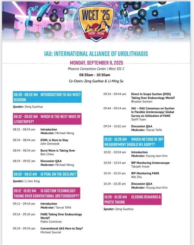 从联合会议上掌舵学术方向,到分享前沿技术,再到斩获国际最高荣誉,曾国华教授及团队在本届WCET大会的精彩表现,全面展示了中国泌尿外科的学术硬实力与全球影响力。